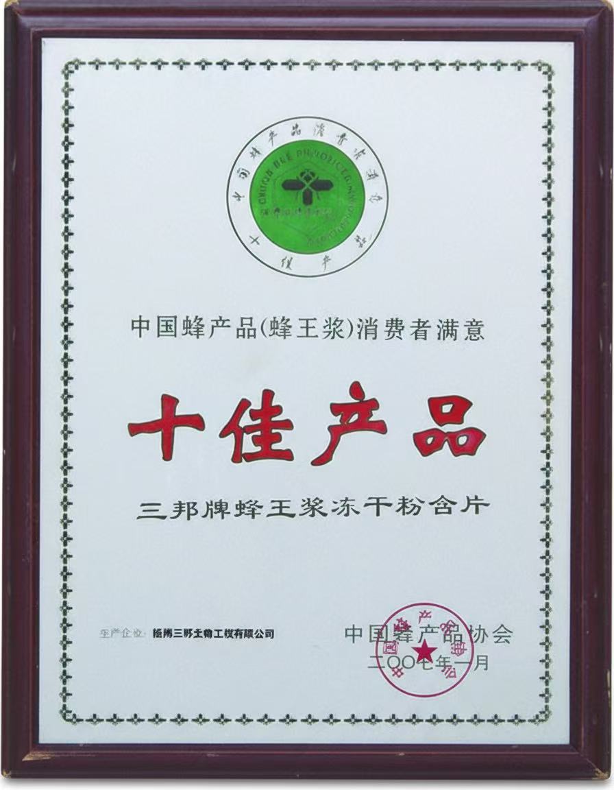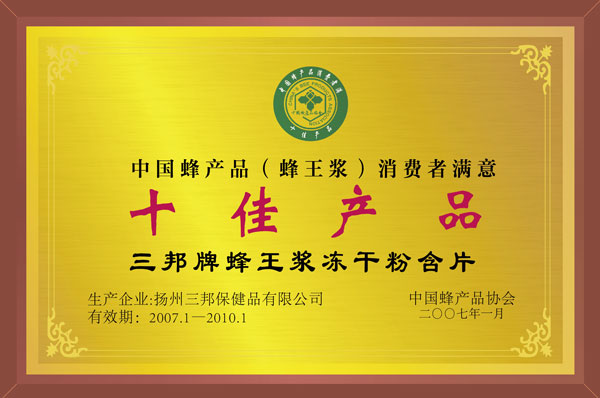 中國(guó)蜂產(chǎn)品消費(fèi)者滿(mǎn)意十佳產(chǎn)品